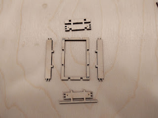 Most of these parts should pop out of their blocks fairly easy. However, it's wise to take the time to turn the block face-down and cut as far through the tabs as possible. Since this is plywood, there may be some places where the laser has not cut all the way through. Take your time to finish cutting through those areas with an exacto knife. Lastly, clean up the location of each of the tabs with the knife or light sandpaper, just to be sure the parts assemble with ease.